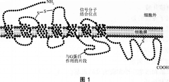 问题 G蛋白偶联受体(GPCRs)是由一条往返穿膜七次的肽链构成的跨膜蛋白(如图1),它与信号分子结合后可引起膜内G蛋白分子的活化。下列说法正确的是(  )。