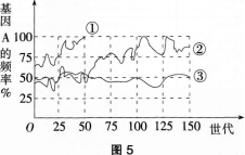 问题 三个不同岛屿上都分布有某种动物,该动物具有一对等位基因A、a。这三个种群中基因A的频率变化如图5中曲线①~③所示,下列分析错误的是(  )。