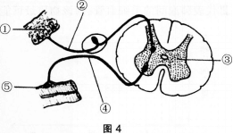 问题 反射弧模式图如图4,假设某人肢体不能运动,但有感觉,则损失的结构可能是(  )。