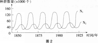 问题 两个动物种群(N1、N2)的数量变化如图2所示.据图判断这两个种群的关系是(  )。