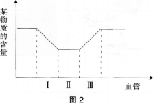 人体血液循环过程中某物质含量在各血管内的变化示意图如图2。如果I代表组织细胞问的毛细血管,Ⅲ代表肺泡间的毛细血管,则该物质最可能是(  )。 A.尿...