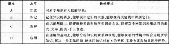 解析 生物知识的评价表如下: 其中,识记水平的评价教学要求是记住知识的要点,能够说出它们的大意,能够在有关情况中识别它们,与题意相符,故答案选A。
