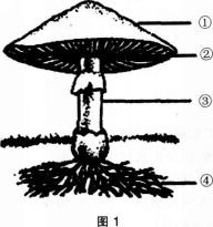 问题 在图1所示的蘑菇中,能产生孢子的部位是(  )。
