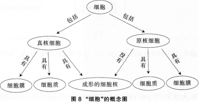 问题 在“细胞的结构”复习课的教学中,某教师采用概念图(图8)帮助学生梳理相关概念,并构建知识网络。 问题: (1)参照此概念图,解释概念图的含义,并列出其要素。(7分) (2)在中学生物教学中,概念图除了可用于巩固和复习,还有哪些用途 (8分)