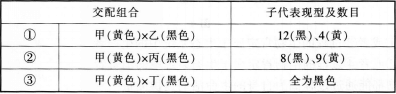 老鼠毛色有黑色和黄色之分,这是一对相对性状。下面有三组交配组成,请判断四个亲本中是纯合子的是(  )。 A.甲和乙 B.乙和丙 C.丙和丁 ...
