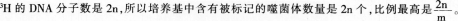 问题 用经3H标记的T2噬菌体n个浸染大肠杆菌,在普通培养基中培养一段时间后,统计得知培养基中共有后代噬菌体m个,其中含有标记元素的噬菌体占的比例为(  )。
