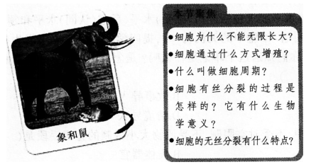 “细胞增殖”是人教版高中生物必修一第六章第一节的内容。如下左图为教材中“问题探讨”栏目的图片,请以此为素材,设计一个新课导入环节。如下右图为教材中“本节聚...