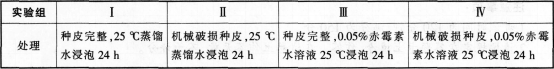 现有与某种植物种子萌发有关的4组实验处理如下表: 下列组合不能达到相应目的的是(  )。A.仅做I组与Ⅱ组实验.可探究机械破损对该种子萌发...