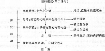 以下是某一教师组织的有关植物茎这一节的教学片段——“变色花之谜”。 教师出示红、蓝变色花,问学生:你们看这些花漂亮吗 这些花有什么特别之处 你认为使他...