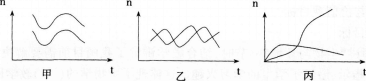 问题 下列三幅图分别表示两种生物种群随时间(t)推移而发生的数量(n)变化。那么,甲、乙、丙三幅图表示的关系依次是(  )。