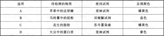 问题 下表是关于物质检测的内容,其中正确的是(  )。 A. B. C. D.