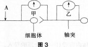 图3是一个反射弧的部分结构图,甲、乙表示连接在神经纤维上的电流表。当在A点以一定的电流刺激,甲、乙电流表的指针发生的变化正确的是(  )。 A.甲...