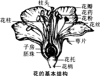 问题 设计一张教学挂图.展示花的基本结构。 (1)用示意图的形式展示你设计的挂图,并标出备结构的名称。 (2)简要说明利用所设计的挂图进行教学时应注意的问题。