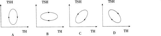 问题 下图能正确反映人体内促甲状腺激素(TSH)与甲状腺激素(TH)含量变化的是(  )。