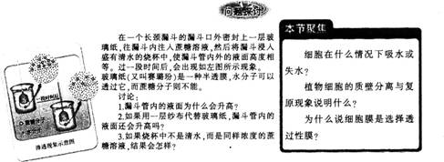 问题 “物质跨膜运输的实例”是人教版新课标高中生物必修一第四章第一节的内容。请对这部分的教材内容进行分析.并确定本节课的教学目标。?