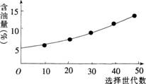 花生的含油量随着选择世代的变化情况如图所示。据下图分析.选择育种对高含油量花生品种的产生所起的作用是(  )。 A.改变了控制产油的一对等位基因的总频率...