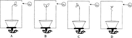 相关内容:方形,暗箱,小窗,光源,一盆,幼苗,花盆,水平,不转,状况