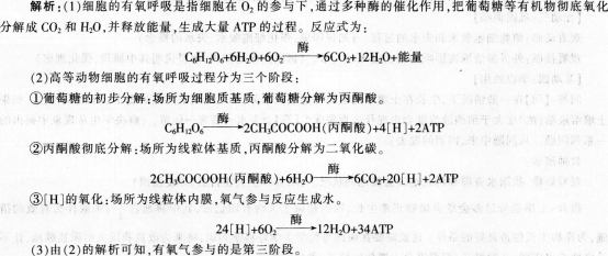 问题 图4是高等动物有氧呼吸过程的图解。 问题: (1)观察图4中的反应过程,其化学反应式为__________。(3分) (2)该反应过程可概括为三个阶段,各阶段的反应场所依次为__________、__________、__________。(9分) (3)该反应过程需要氧参与的是第__________阶段。(3分)