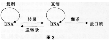 有关中心法则(图3)的叙述正确的是()。 A.DNA复制需要tRNA和核糖体同时参与 B.在真核细胞中.RNA可以逆转录成DNA C.RNA...