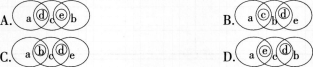 问题 下图中的圆分别表示:a—生产者、b—分解者、c—原核生物、d—蓝藻、e—腐生细菌。能正确表示它们之间相互关系的是(  )。