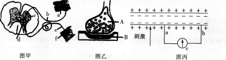 问题 下图甲是缩手反射相关结构,图乙是图甲中某一结构的亚显微结构模式图,图丙表示图甲神经纤维某段放大图。据图回答: (1)图甲中f表示的结构是___________,图乙是图甲中——(填字母)的亚显微结构放大模式图,图乙中的B是下一个神经元的___________。(3分)(2)缩手反射时,兴奋从A传到B的信号物质是___________。兴奋能由B传到A吗 并给出原因___________,___________。(6分)(3)图丙是图甲的一段,如图所示,如果在电极a的左侧给一适当刺激,此时a、b之间会产生电流,其方向是___________;电流计c的指针会发生___________次方向___________(相同或相反)的偏转。(6分)
