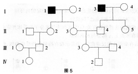 图5为某种单基因常染色体隐性遗传病的系谱图(深色代表的个体是该遗传病患者.其余为表现型正常个体)。近亲结婚时该遗传病发病率较高,假定图中第Ⅳ代的两个个体婚...