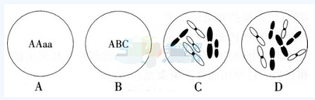 下图是四种生物的体细胞示意图,A、B图中的每一个字母代表细胞的染色体上的基因,C、D图代表细胞的染色体情况。那么最可能属于多倍体的细胞是()。
