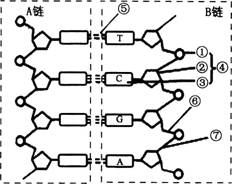 选项 A.DNA的稳定性与⑤有关,生物体内DNA解旋酶、RNA聚合酶、DNA聚合酶等可以断开⑤键 B.④是一个胞嘧啶脱氧核苷酸 C.DNA连接酶可催化⑥或⑦键形成 D.A链、B链的方向相反.骨架是磷酸和脱氧核糖