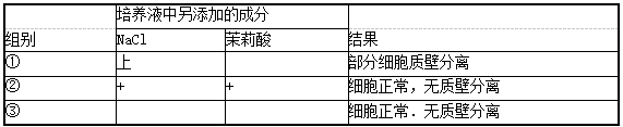 问题 将成熟胡杨细胞放在三种不同培养液中连续培养三天,结果如下表,下列叙述正确的是()。 注:“+”表不有添加,“一”表示无添加