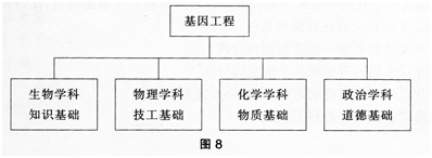 某中学生物教师在进行“基因工程”这一内容的授课时,引导学生构建了如图8所示的知识结构图,以加深学生对所学知识的理解,培养其综合运用知识的能力。教师的这一做...
