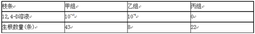 选项 A.每组选取生长状况基本相同、数量相同的枝条 B.各组处理枝条的时间可以不同 C.丙组加入等量的蒸馏水,起对照作用 D.甲组2,4-D溶液浓度较适宜,具有促进作用