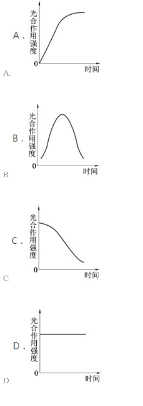 问题 将水稻的叶肉细胞放在含低浓度NaHCO3的培养液中,并用石蜡油覆盖液面。先照光一段时间,然后在相同光照强度下不同时间测定叶肉细胞的光合作用强度。下列示意图中能正确反映测定时间与光合作用强度关系的是()。