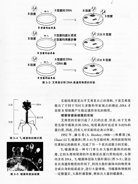“DNA是主要的遗传物质”是人民教育出版社高中《生物》必修2第三章第一节的内容。请依据所给的部分教科书内容,完成相应的教学设计。(材料见后两页) 要求:...