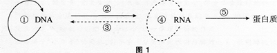 图1为中心法则图解,下列有关的叙述中,正确的是()。 A.过程③发生在所有RNA病毒中 B.转基因生物中能够体现①~⑤过程 C.①~⑤过程中...