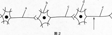图2表示三个通过突触连接的神经元。现于箭头处施加一强刺激,能测到膜内外电位变化的位置是()。 A.a,b B.b,d C.d,e D.a,c,e