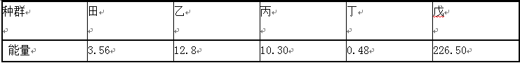 某陆地生态系统中,除分解者外,仅有甲、乙、丙、丁、戊5个种群,调查得知,该生态系统有4个营养级,营养级之间的能量传递效率为10%~20%,且每个种群只处于...