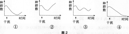图2表示不同的自然生态系统在受到同等程度的外来干扰后,群体数量的变化情况,其中抵抗力稳定性最高的生态系统是(  )。 A.① B.② C.③ ...
