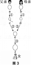 图3表示人生殖发育过程中染色体数目的变化,下列叙述中不正确的是(  )。 A.f的性别是由父方决定的 B.c的染色体可以表示为22+Y C.①...