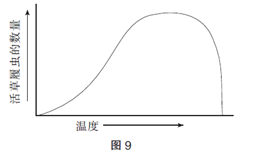 问题 图9是草履虫的存活数量与温度的关系曲线,属于自变量的是( )。