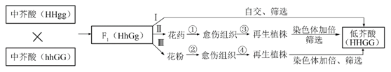 问题 油菜有两对独立遗传的等位基因(H和h,G和g)控制菜籽的芥酸含量,低芥酸油菜的菜籽油品质更高。下图为获得低芥酸油菜(HHGG)品种的3条技术路线,下列叙述正确的是( )。