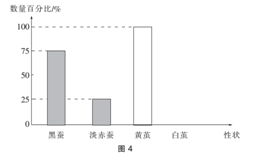 蚕幼蚕的体色黑色与淡赤色是一对相对性状,茧的黄色与白色是一对相对性状。某科技小组用黑蚕黄茧和黑蚕白茧两种蚕作为亲本杂交,后代表现型比例统计结果如图4所示。...