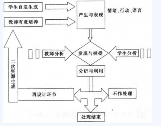 解析 (1)我们可将对学生资源的捕捉与利用过程分解为以下环节:产生与表现环节、发现与捕捉环节、分析与使用环节。 学生资源的自发生成到利用为一条主线(主动资源的产生利用):学生资源显现——教师发现后捕捉——教师分析(或学生分析)、判断价值后利用;学生资源的被动生成到利用为另一条主线(被动资源的产生利用): 在教师的有意激发下学生资源显现——教师发现并捕捉——教师分析(或学生分析)、判断价值后利用。两条主线后有一共同分支,即在处理结束后可能还会有再设计环节(进入下一个学生资源的生成捕捉和利用阶段),教师在一次资源捕捉利用后再设计,促使二次学生资源生成,教师再分析、利用。 (2)在新课程的理念下,学生不应仅作为课堂教学的参与者,而更应在课程实施的过程中,作为一种课程资源来审视和发掘。学生真实生活体验的鲜活性,不同思维方式的差异性。探索经历的过程、结果及感受的多元性,都是弥足珍贵的课程资源。因此在课程资源的开发和利用过程中,要研究一般学生和特定学生的情况,在教学中不仅要有效地利用学生已有的知识结构、生活体验、学习兴趣,而且要兼顾他们的差异,从而因材施教,合理地开发和利用学生的课程资源。另外也要特别注意捕捉、开发和利用学生在教学活动中显现出的课程资源。须注意,学生资源的产生有主动和被动两种情况,主动资源是由学生自觉或自发产生出来的资源。