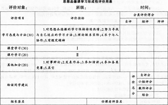 (2)结合上表,说明思想品德课开展形成性评价的意义。