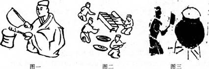 在《集安高句丽壁画》一书中,作者称图一为“剁肉图”,把古人右手所持工具看做菜刀;后有研究者结合该书图二“烤肉串”和图三“厨师扇风”,认为古人右手拿的是史称...