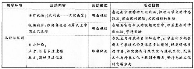 材料:下面是南京市某中学思想政治课教师关于“文化创新的途径”的课堂教学设计(教学时间为45分钟)。 问题:请运用思想政治课程教学理论。简要评价...