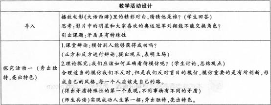 下面是某思想政治课教师为教授《生活与哲学》中“矛盾的特殊性及具体问题具体分析”这一内容而编写的教学设计。 问题:请运用思想政治课程与教学理论分析...