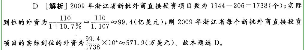 问题 2009年,浙江省每个新批外商直接投资项目的实际到位的外资为( )万美元。 A. 870. 1 B. 780. 1 C. 671. 9 D. 571. 9