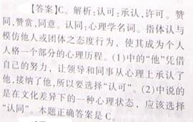 问题 下列依次填入横线处的词语,恰当的一组是: (1)进入这个单位后,他勤奋工作,每次都保质量地完成任务,很快就得到领导及同事的 。 (2)由于父亲是美国人,母亲是韩国人,比起其他同龄的中学生来说,她很难自我 。 A。认同,认可 B。赞同,认识 C。认可,认同 D。赞同,认同