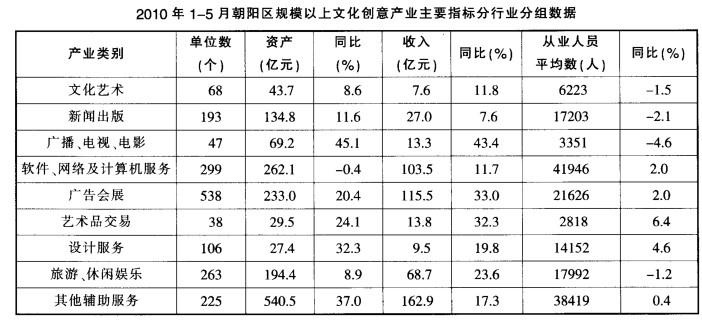 根据以下资料,回答问题。截至2010年5月底,北京市朝阳区规模以上文化创意产业单位共有1777家,总资产达到 1534.6亿元,同比增长19.6%;1...