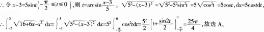 定积分的值是( )。A、25π/4 B、25π/2 C、25π/6 D、9π/4